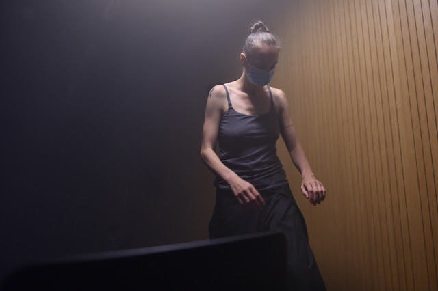 Ioana Marchidan se pregătește pentru performance ul "Reverse Discourse" în sala Auditorium din cadrul Muzeului de Artă Recenta. Proiect co finantat de Administraţia Fondului Cultural Nationa